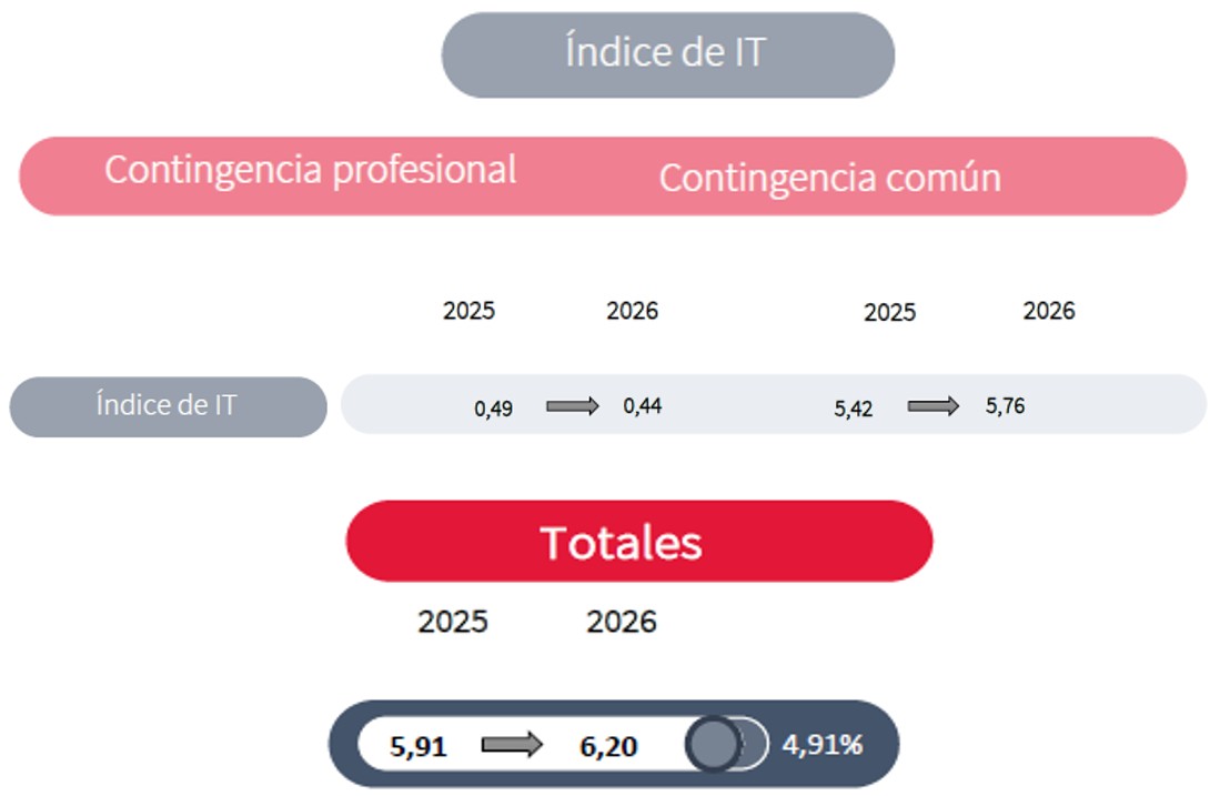 Durante el período analizado de 2025, el índice de incapacidad temporal (IT) se sitúo en 5,92 días de baja por cada 100 días cotizados, lo que representa un incremento del 10,19% en comparación con el mismo período del año anterior.